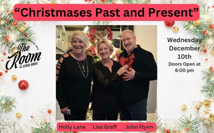 Feeling nostalgic for the old days? The elf’s not what he used to be! Join Lisa Graff, Holly Lane and John Francis Flynn for their inaugural holiday show titled “Christmases Past and Present,” on Wednesday, December 10, 2025, at Paul Kares: The Room at Cedar Grove.